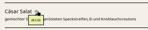 Fahren Sie mit der Maus darüber oder tippen Sie darauf (auf mobilen Geräten), um die Allergene dieser Speise anzuzeigen.